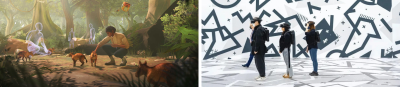 无论是《消失的法老》还是《永恒的圣母院》,都验证了VR大空间技术在多人实时同地交互中的巨大商业潜力,成为这一领域的标杆案例。但值得注意的是,随后大量跟进的同类产品在交互设计上却陷入了明显的同质化。尽管用户共享同一物理空间,人与人之间的互动形式却极为单一,往往只是同步行走、共同观景,缺乏更深入的协作或交流机制(图1)。